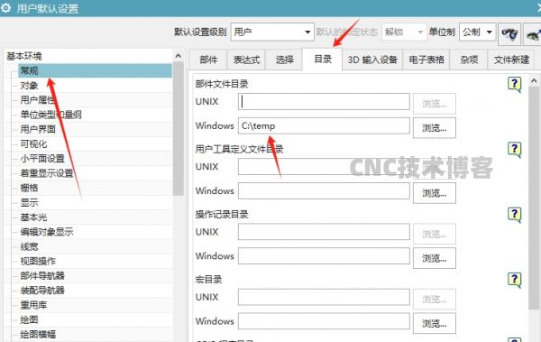 3、选择【基本环境】-【常规】-【目录】,在“部件文件目录”中的“windows”后面选择默认路径,如下图,然后点击确定