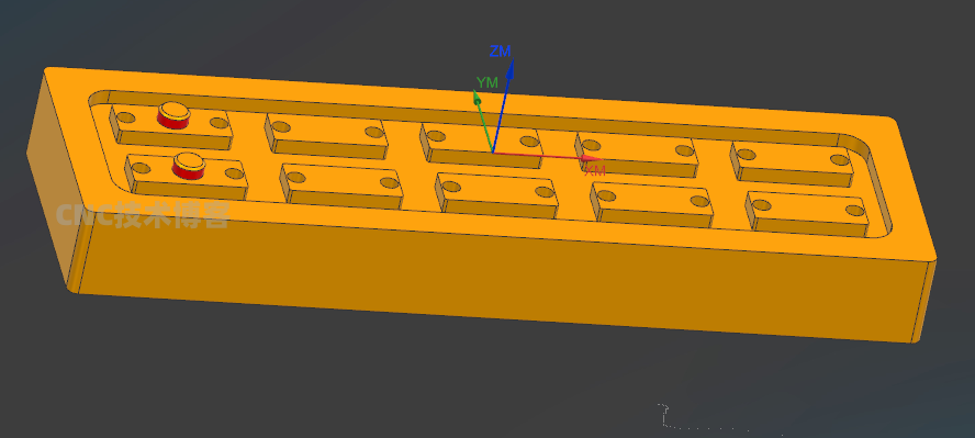 上图为该款产品的尺寸(47.1121*27.5253*2),该款零件比较小,且厚度仅为2毫米。客户给我们提供的材料,外侧形状及厚度已经到位,需要加工红色部分的特征。加工的数量为20件工序一在铝钳口上铣一个1.5毫米深仿形,露出0.5毫米,便于给零件倒角。(操作工在装夹的时候对力度有要求,不能用太大的...
