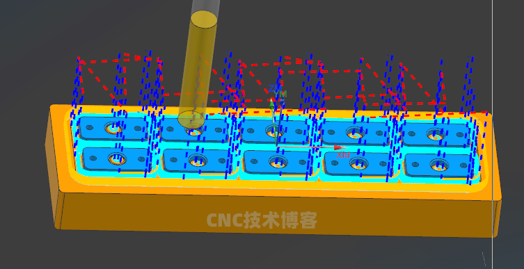 最近加工了几款紫铜的产品零件。材料和排版由客户提供,厚度5毫米装夹方法是锁螺丝的方式。将残料部分打7.0孔,锁上M6螺丝。加工出正面的腰孔和孔特征。使用6毫米刀开粗侧面。底面留20丝余量,小刀清角和光刀。紫铜这个材料比较软和粘,为了方便将产品取下来,用3毫米小刀将工件切断...